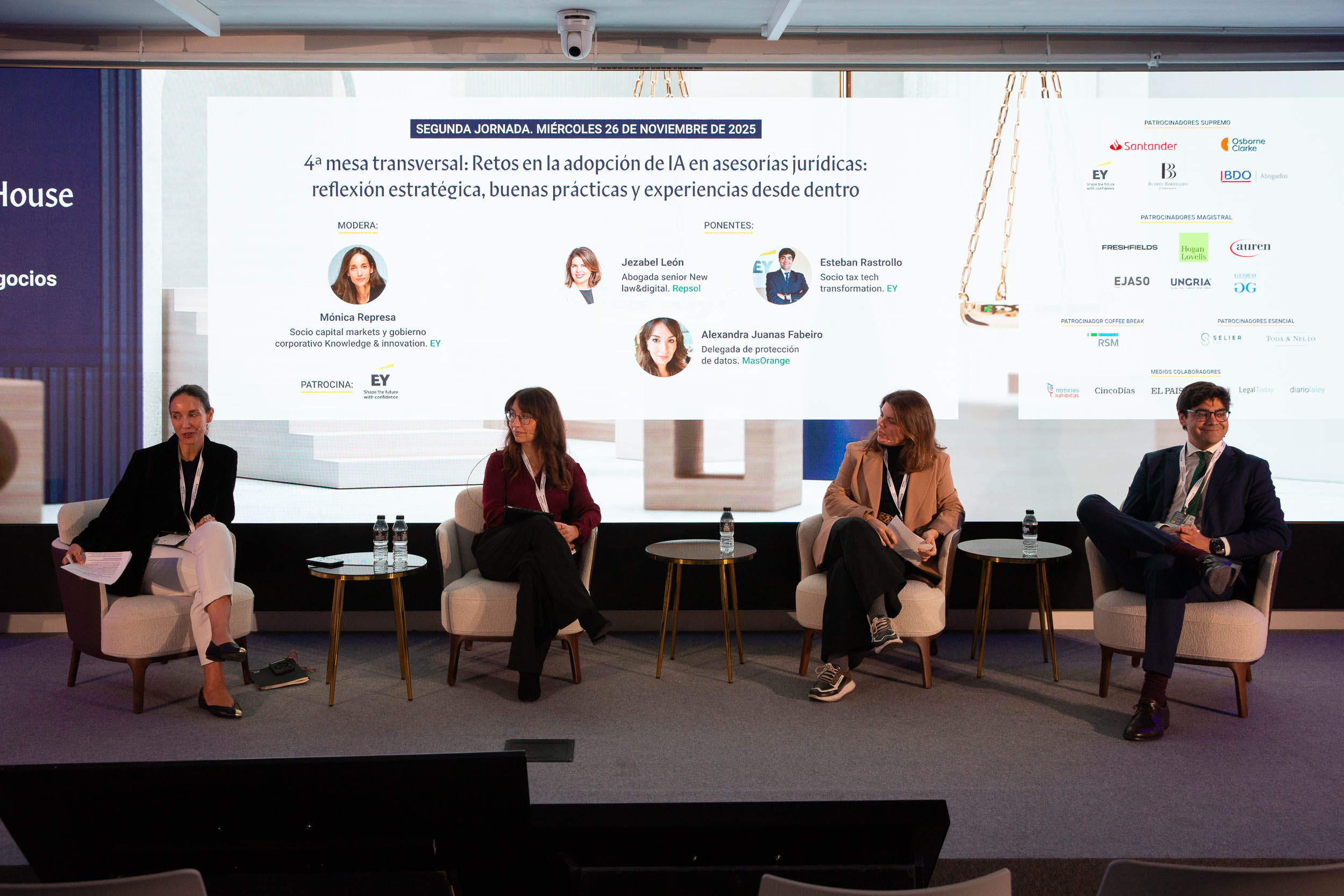 | 11:00 h. | 4ª mesa transversal: Retos en la adopción de IA en asesorías jurídicas: reflexión estratégica, buenas prácticas y experiencias desde dentro.