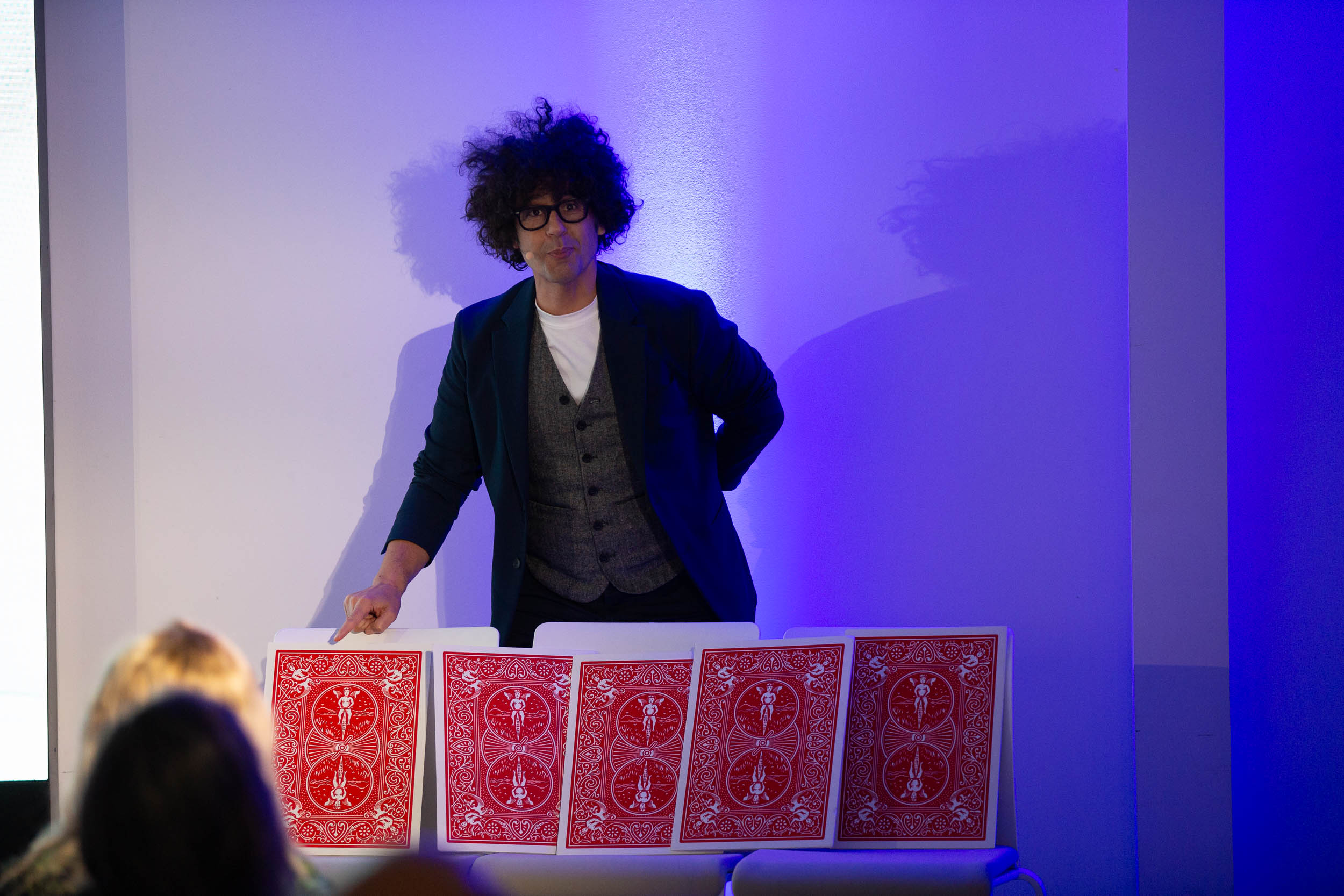 Su carisma y talento para la magia captarán la atención del público, mientras que sus intervenciones ofrecerán una experiencia memorable que combina ilusiones con reflexiones motivacionales de gran impacto.
